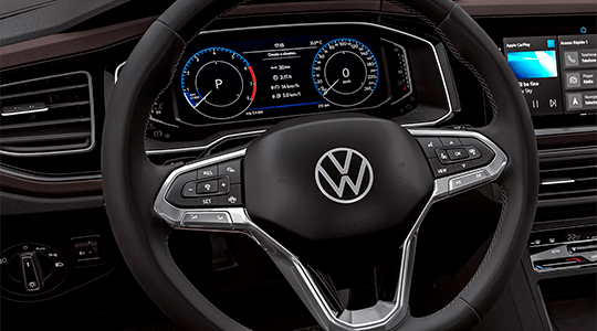 O painel digital de 8” e 10,25” permite a personalização de navegação de acordo com seu perfil. Tenha o computador de bordo, dados do veículo, acesso às músicas no seu VW Play e outras funções com mais praticidade.